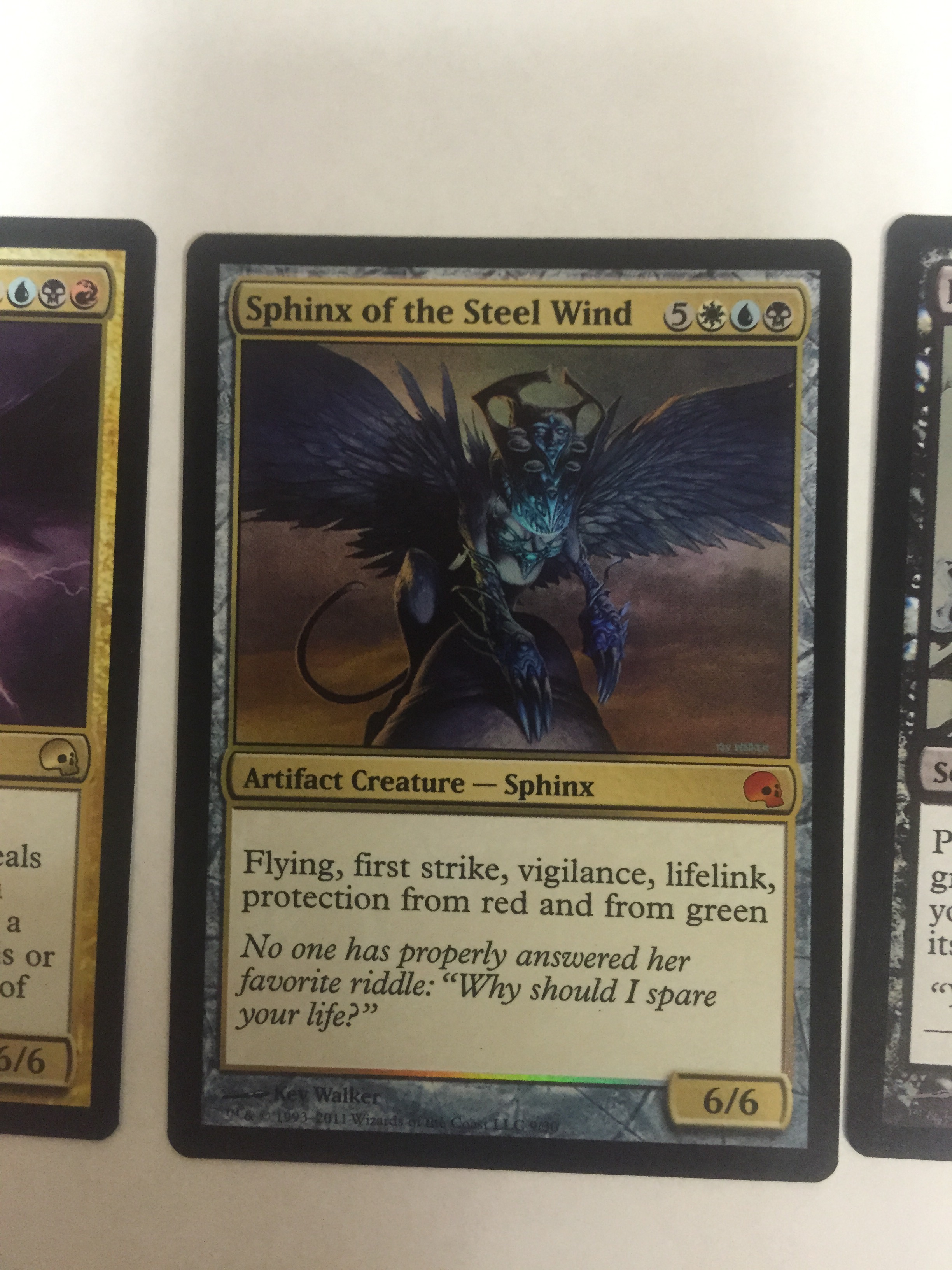 Chandra’s deck From the DDA was an interesting matchup. Burn is meaningless against Sphinx of the Steel Wind on Turn three. All of the progress Chandra could bring was just displaced by the giant, lifelink, vigilance, first striker.