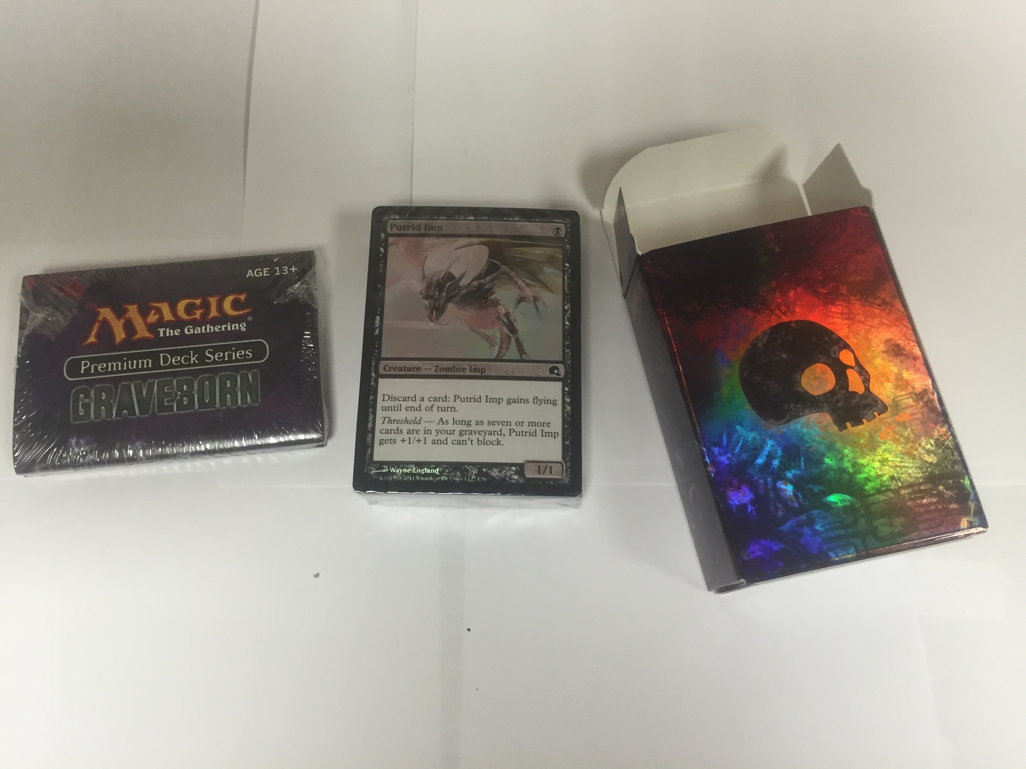 Because it is pretty hard for non Magic players to know what to get Magic players, I was told I could just order what I wanted. So I ordered “Graveborn,” a Legacy MTG deck from 2010 or 2011. It looked pretty sweet on the internet, and the allure of all foil swamps hypnotized me into making the purchase. Have I found it to be worth the $83.00 paid through TCGplayer? Keep reading to find out more!