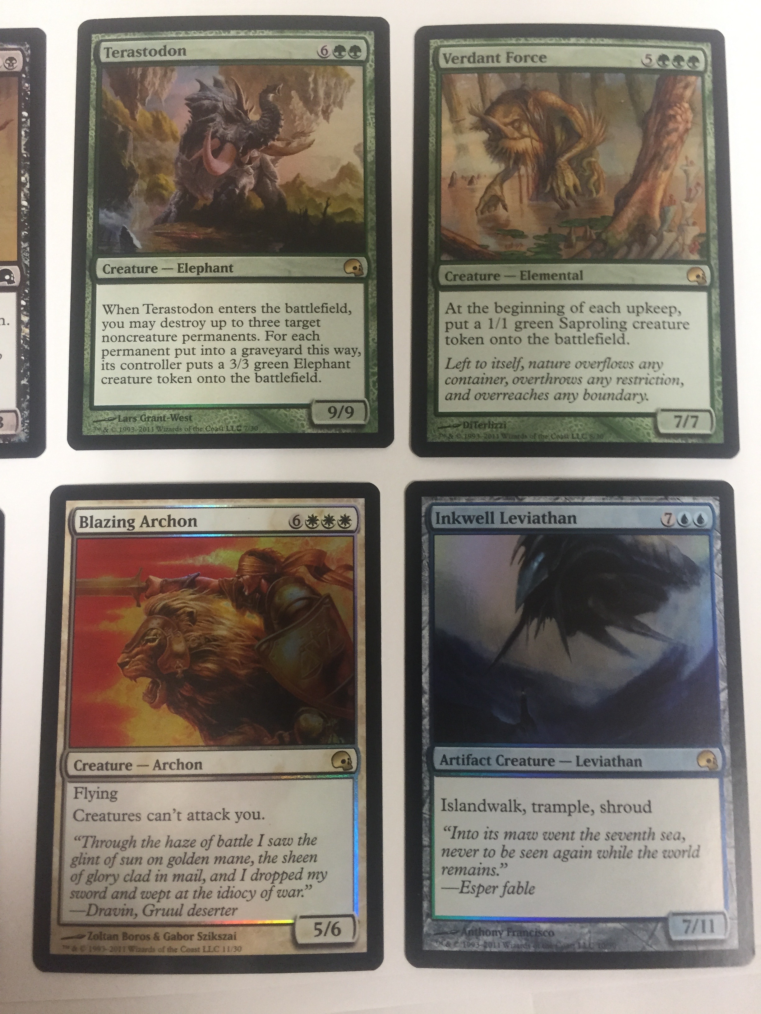 Modern has some possibilities though. I have already ordered “Gifts Ungiven,” which means introducing blue to this deck. However, I think it will improve the deck where it is weak. Adding blue means I get to use my own cancel spells. Unburial rights is also a possibility. In fact, someone recently flashed back Unburied rights and got Emrakul out on me when I was playing my Amulet/Bloom deck. This would mean introducing white. So now we are talking esper…