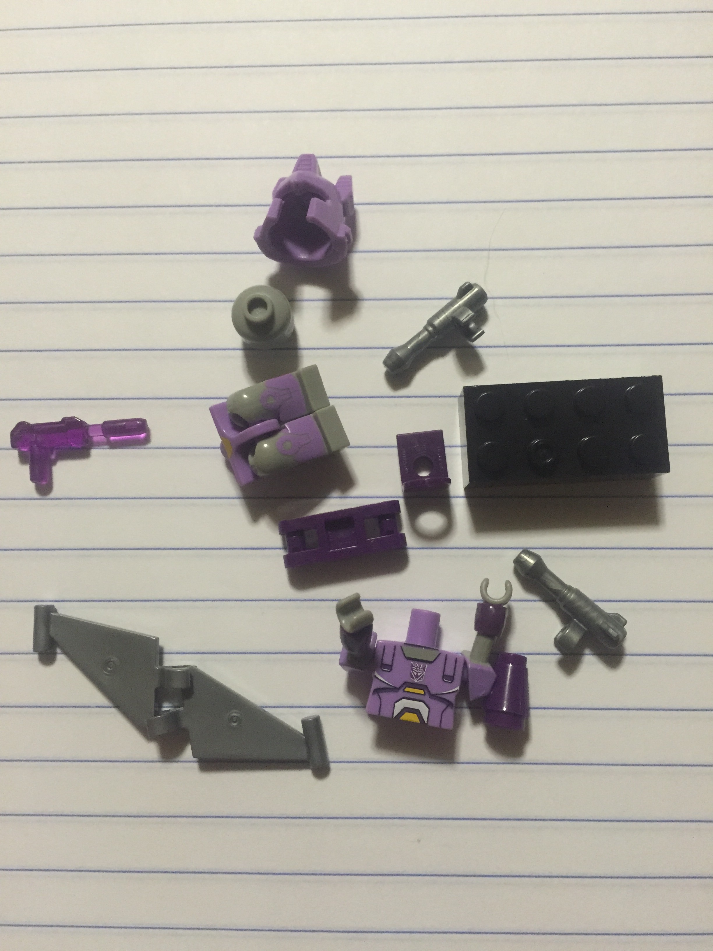 After rebuilding him into “Thundercracker” or similar re-colored Starscream, I put him back the way he is supposed to be according to the instructions. I am certain, however, if there was a Starscream KREO, he would probably have the same pieces with a different coloration.