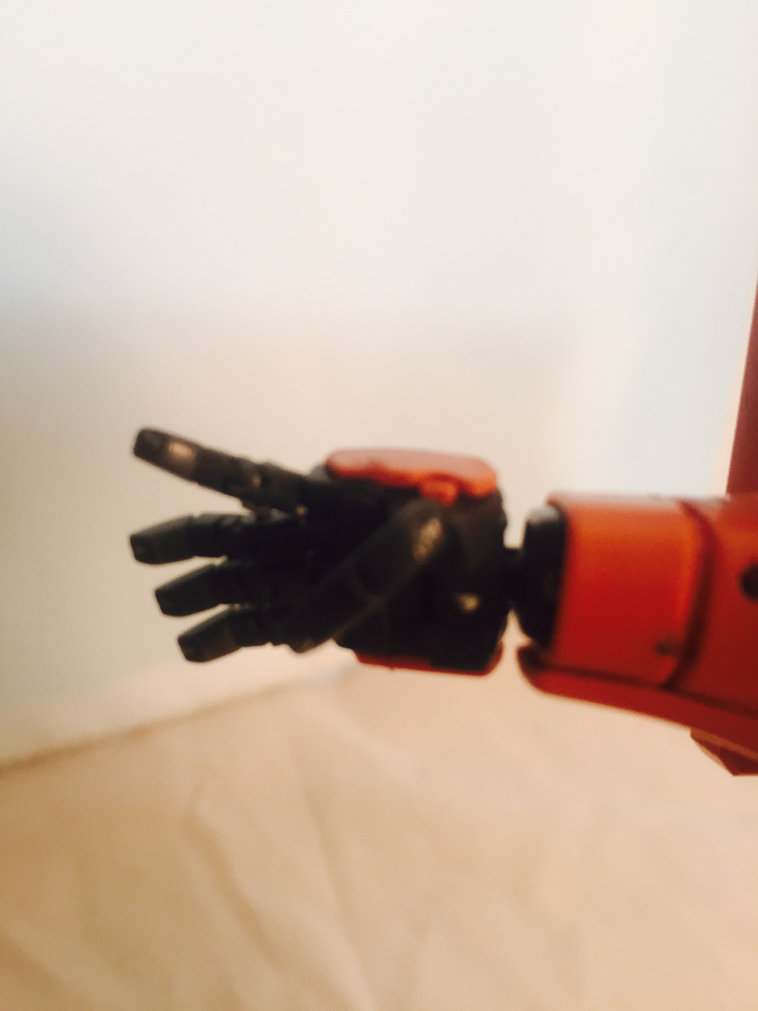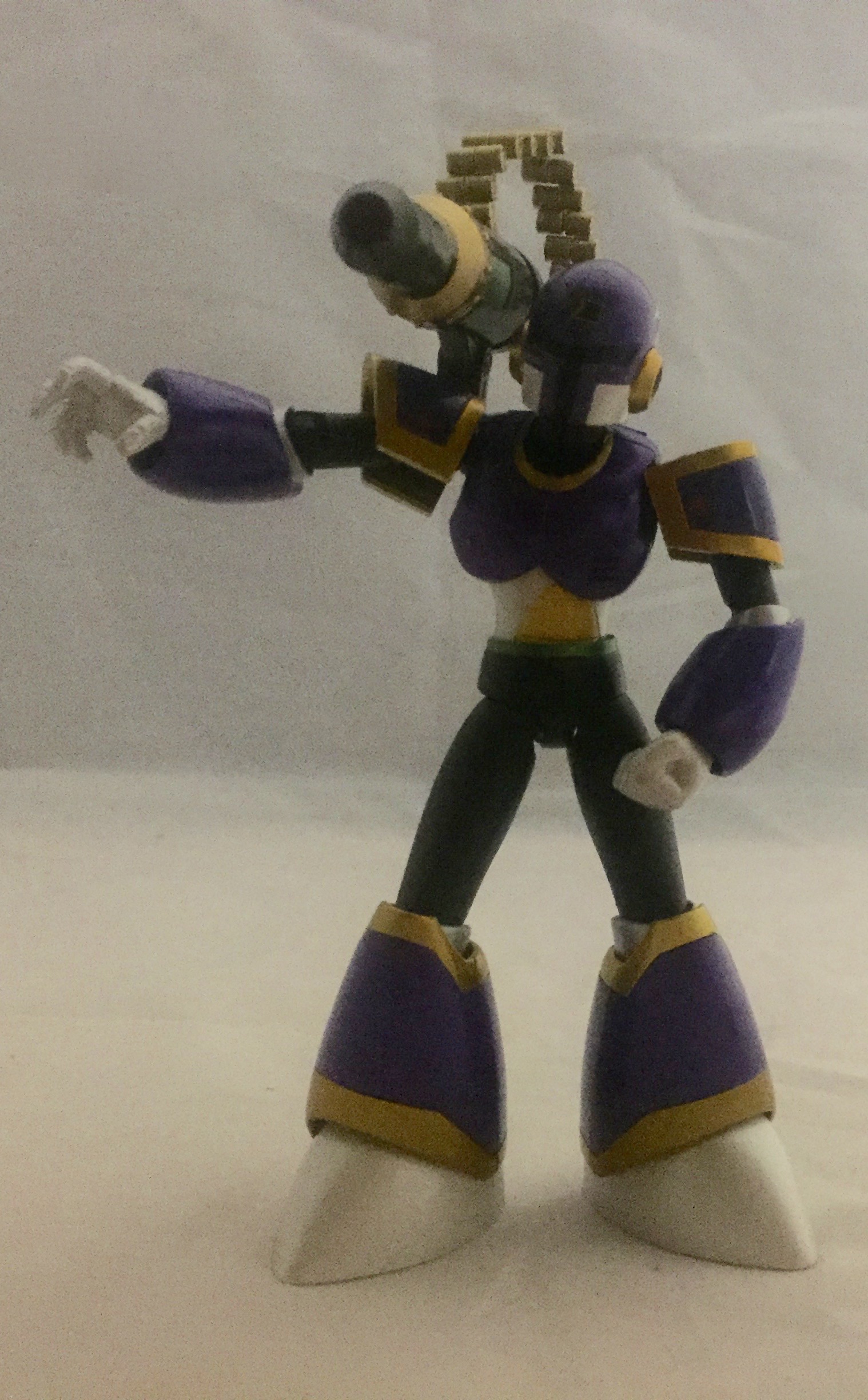 Here is the backpack, showing all of its details in 3X faster mode. (The legs also have details for “3x faster mode.”) The backpack was the only truly “stupid problem.” The backpack WOULD NOT attach to the figure as it was supposed to. It works by a little slot mechanism that seemed to be obstructed by excessive plastic. We solved the problem with some super-glue. We checked other reviews of the figure, and found that ours seems to be an exception rather than the rule.