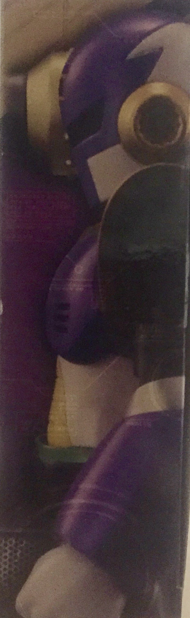 The head really shows the small details. The two “holes” on the side of the mask are meant to be vulcan cannons! You can see the vac-metal and the plain gray plastic. The crimson color goes well with the flat gray. There is an eye detail that can’t really be seen because of the size and impressiveness of the rest of the head.