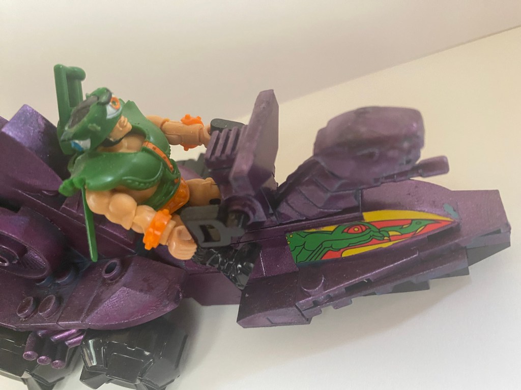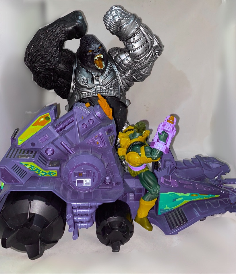 What got me started on this was this image that I took when I picked up the McFarlane toys Cy-Gor and wanted some pics. I got this one with MOTUC Man-At-Arms on the MOTUC Battle-Ram. And so I was messing with the filters in Apple Photos, and this color scheme came up. And instantly, I thought…this looks like the enemy version of the battle ram! The “War Sled.” (As opposed to “Sky Sled.)