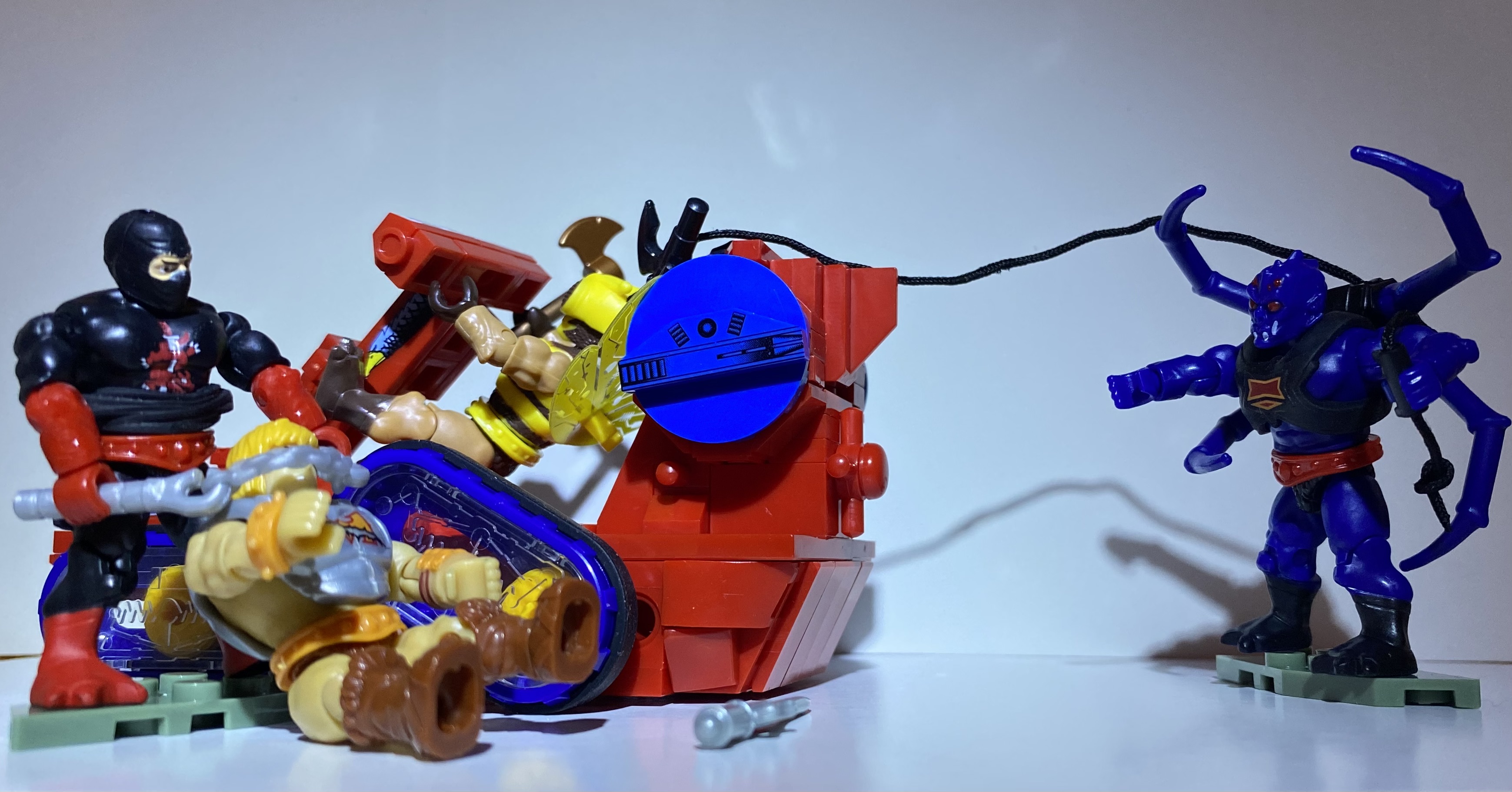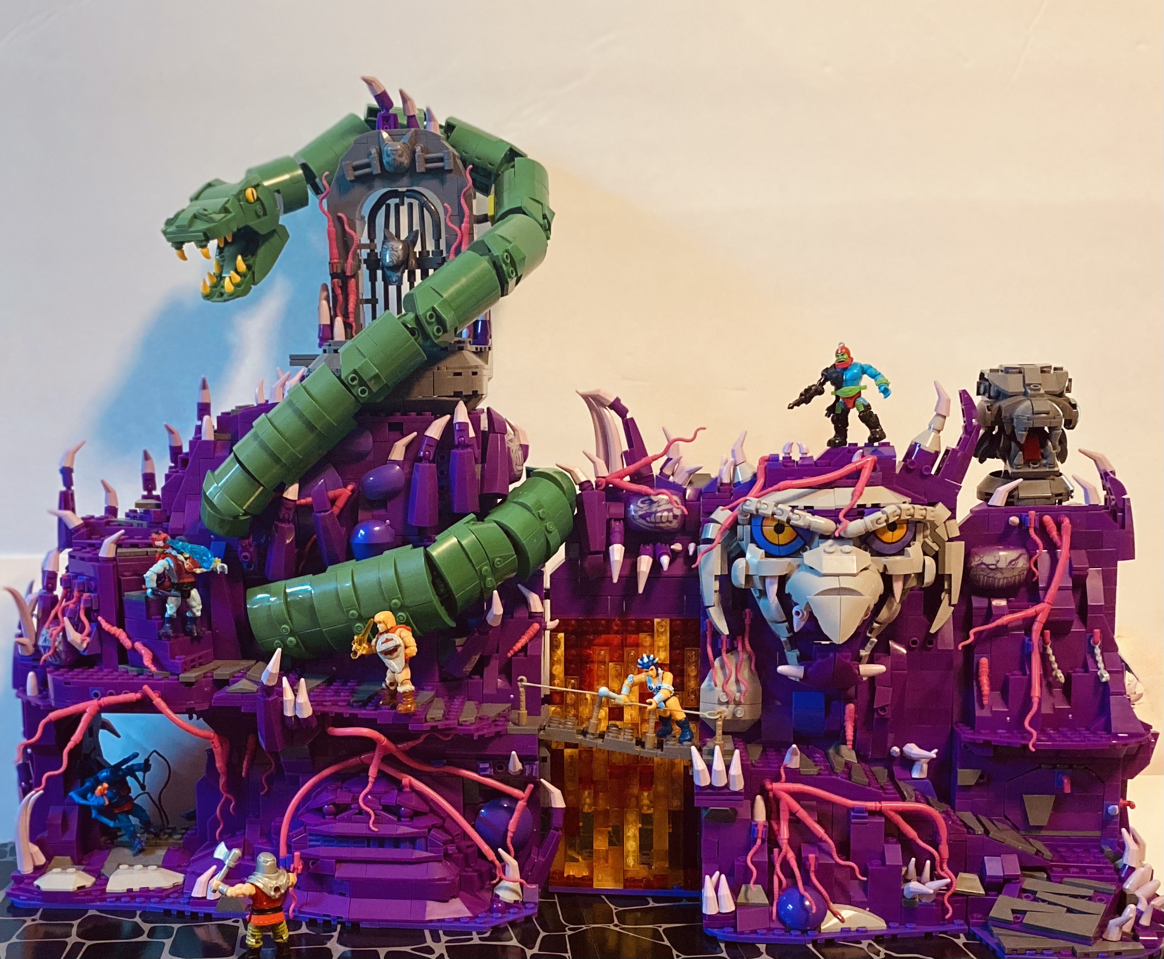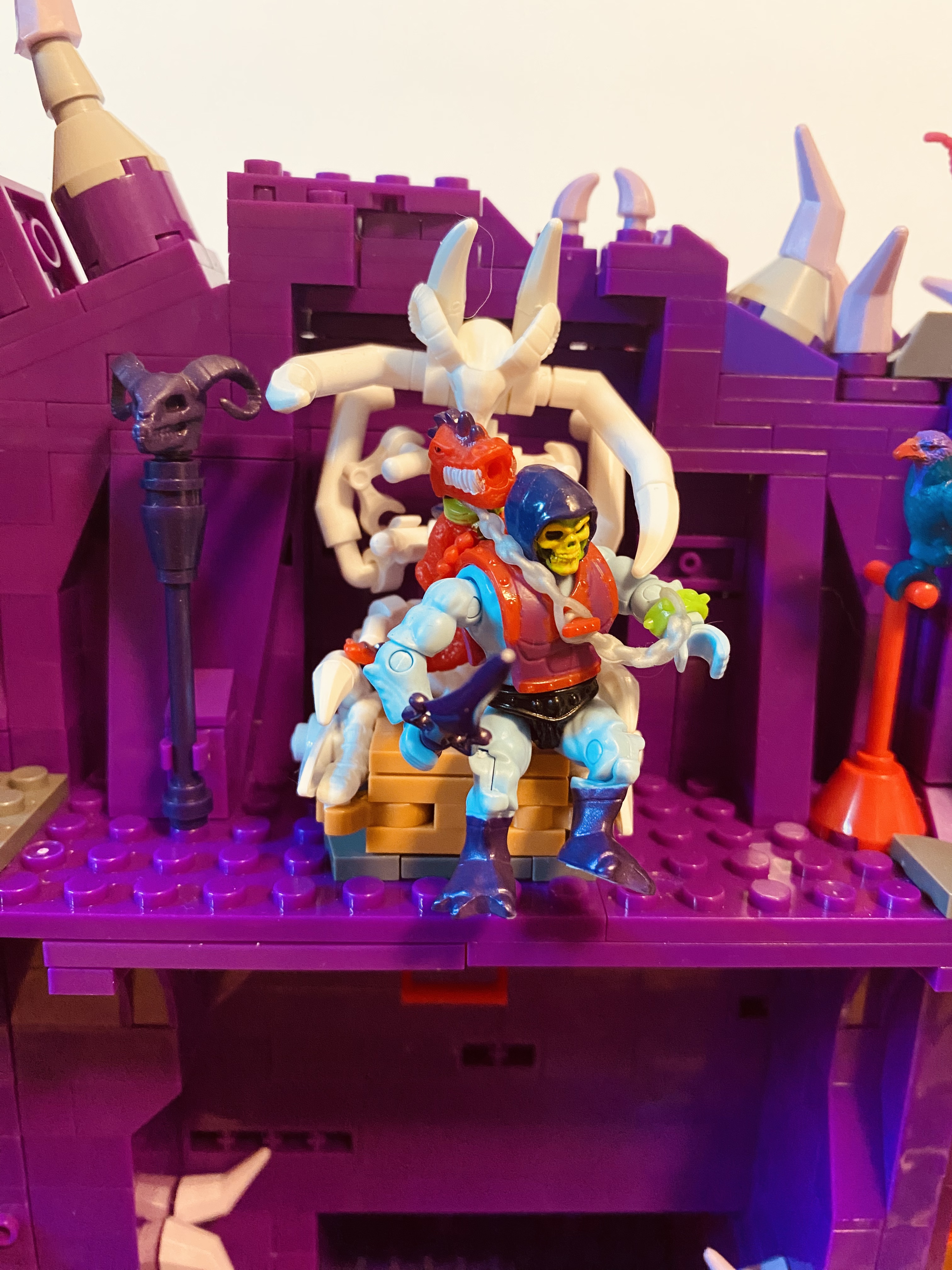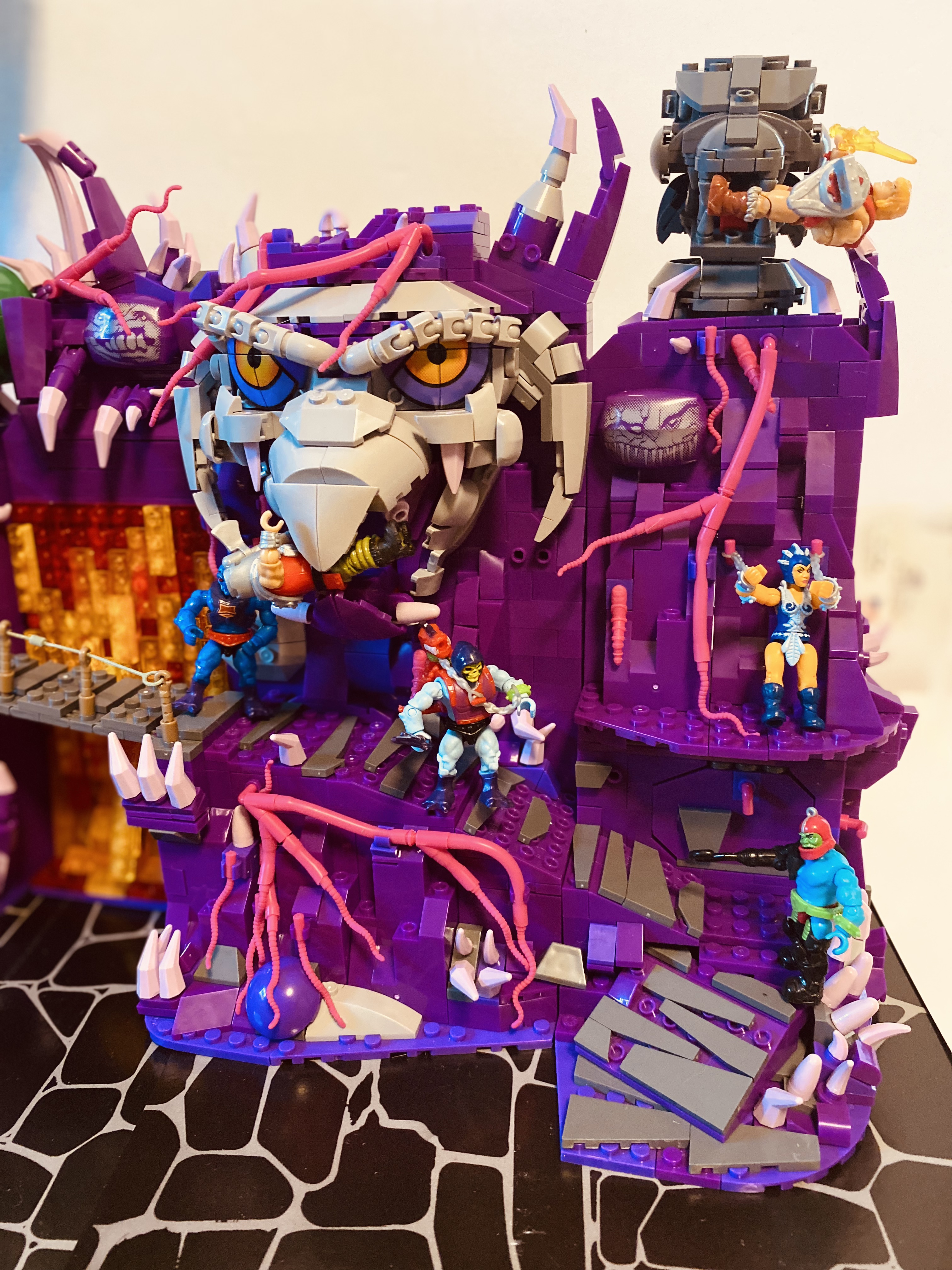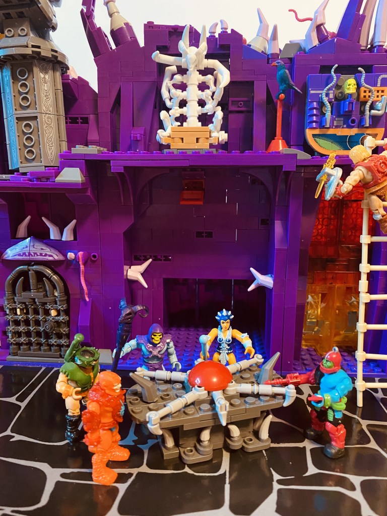 A lot of hours of work. I am going to give the whole set a 3.5/5. Why the decimal? I believe there is alot of fun ahead with this set. I already have plans to make a comic! But the build was daunting, tedious, and lengthy, perhaps moreso than the feeling of accomplishment when it was done. More like “I’m glad I am finally finished.” I know I am old and such, but who is this marketed towards? The mid 30’s to mid 40’s crowd. I am optimistic that I will really enjoy it as a part of my almost complete set (Battle for Eternia II is hard to get). This piece is essential to having a complete set on account of the minifigures and on account of being a Masters of the Universe fan.
