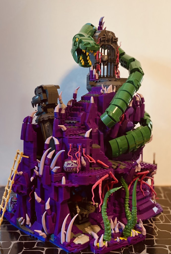 The table, the throne, and the sarlacc pit monster are ultimately cool pieces to use anywhere. I don’t recommend relying on this castle to stay locked together as you move it around. Remember, the SpartanNerd has dropped Castle Grayskull and had rebuild it. On the other hand, the pieces here are very tight. Almost unreasonably tight. The little pink horns and teeth and such…those things break off very easily. But also, that is an area where you kind of have artistic liberty also if you wanted to change them around.