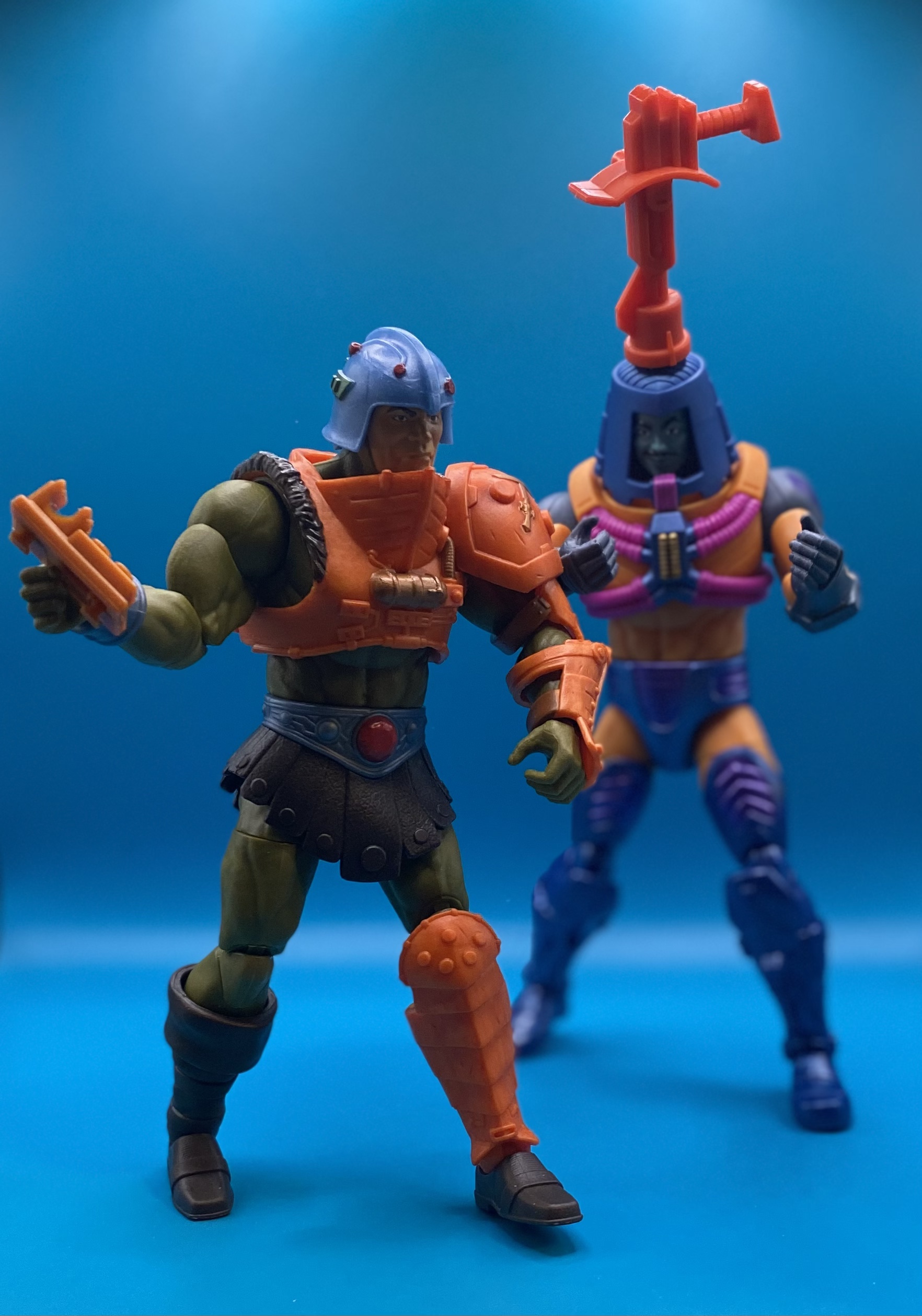 Pictured: MASTERVERSE New Eternia Man-At-Arms and Man-E-Faces.
