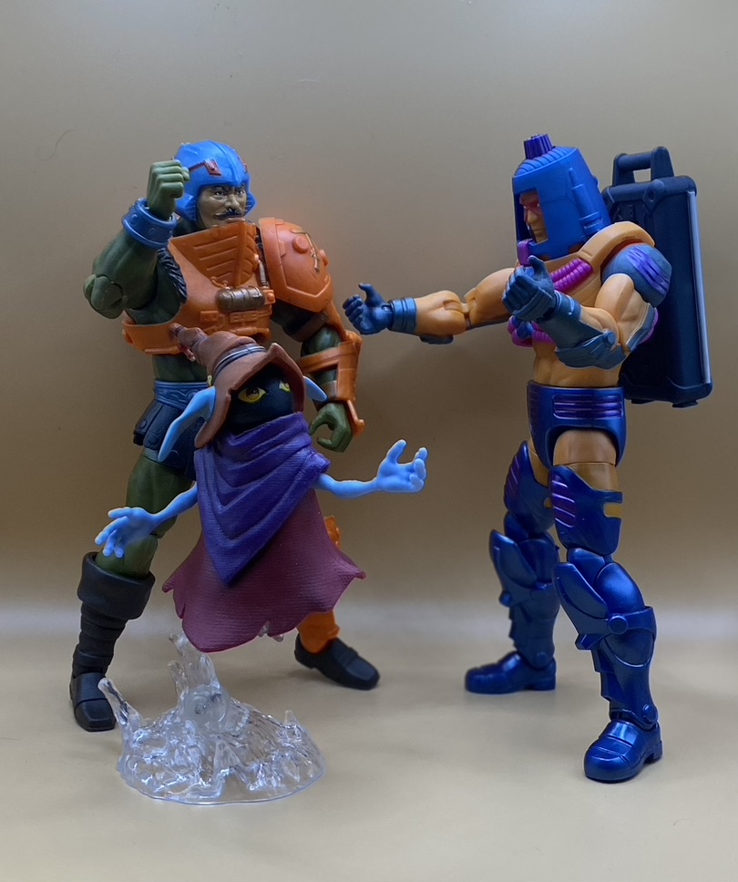 Pictured: MASTERVERSE New Eternia Man-At-Arms and Man-E-Faces. Also MASTERVERSE Revelation Orko, who came with Savage He-Man.