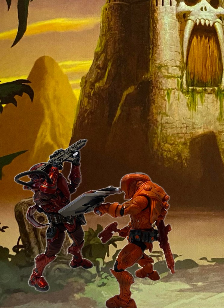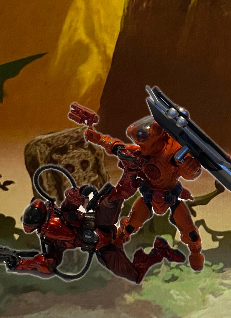 Yep. I say I believe the Cosmic Legions T.U.5.C.C. Pilot is the winner here based on his paint job. Now…It is true I don’t like that Clemson orange, but the details on the Pilot really pop with shiny metallic details. I believe mostly Wal-Torr is molded in orange plastic and then washed with a darker shade, while the Pilot has attention to detail that out does him. Now I believe Wal-Torr has better accessories and more adaptability with that skull head. But the amount of variation you can get from T.U.5.C.C. Pilot is greater. The skull head is kind of puzzling, but the blue alien head is a new sculpt that resolves some of the mystery about who these aliens are. And besides. GO GAMECOCKS.