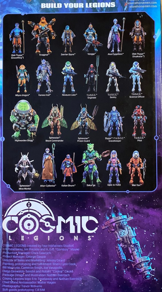 The back of both boxes feature cross-sell images from the rest of their respective Cosmic Legions wave.