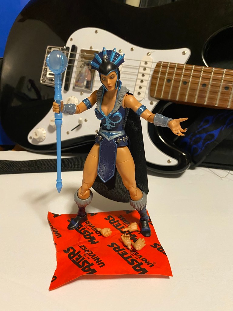 I took some photos and videos at home while I was sick, and some when I was on a trip in early February to the SCMEA convention in Columbia, SC. The hotel had a nice office area and also a good table with a book light that made for a terrific spotlight! (See New Eternia Evil-Lyn on the runway!)