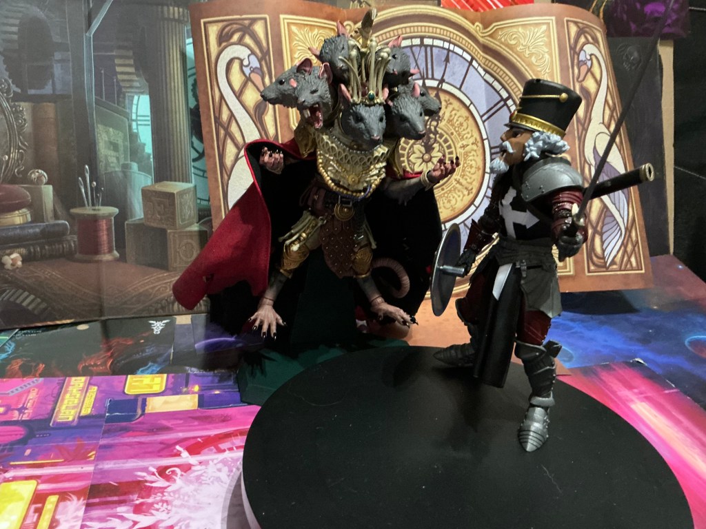 PICTURED: Figura Obscura Mouse King and Mythic Legions Ninian Infantry.