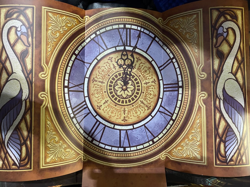 Behind the figure we have yet another backdrop piece which is a clock face, featuring two swans. I don’t know the significance of these two swans, but it made me think of the Swan theatre or something like that Wagner was famous for putting on performances for King Ludwig (Is my history right about this? And if so, does it have anything to do with the Nutcracker?). I already imagine I will use this to remake some Earl Norem photos from the Golden Book “Time Trouble.”
