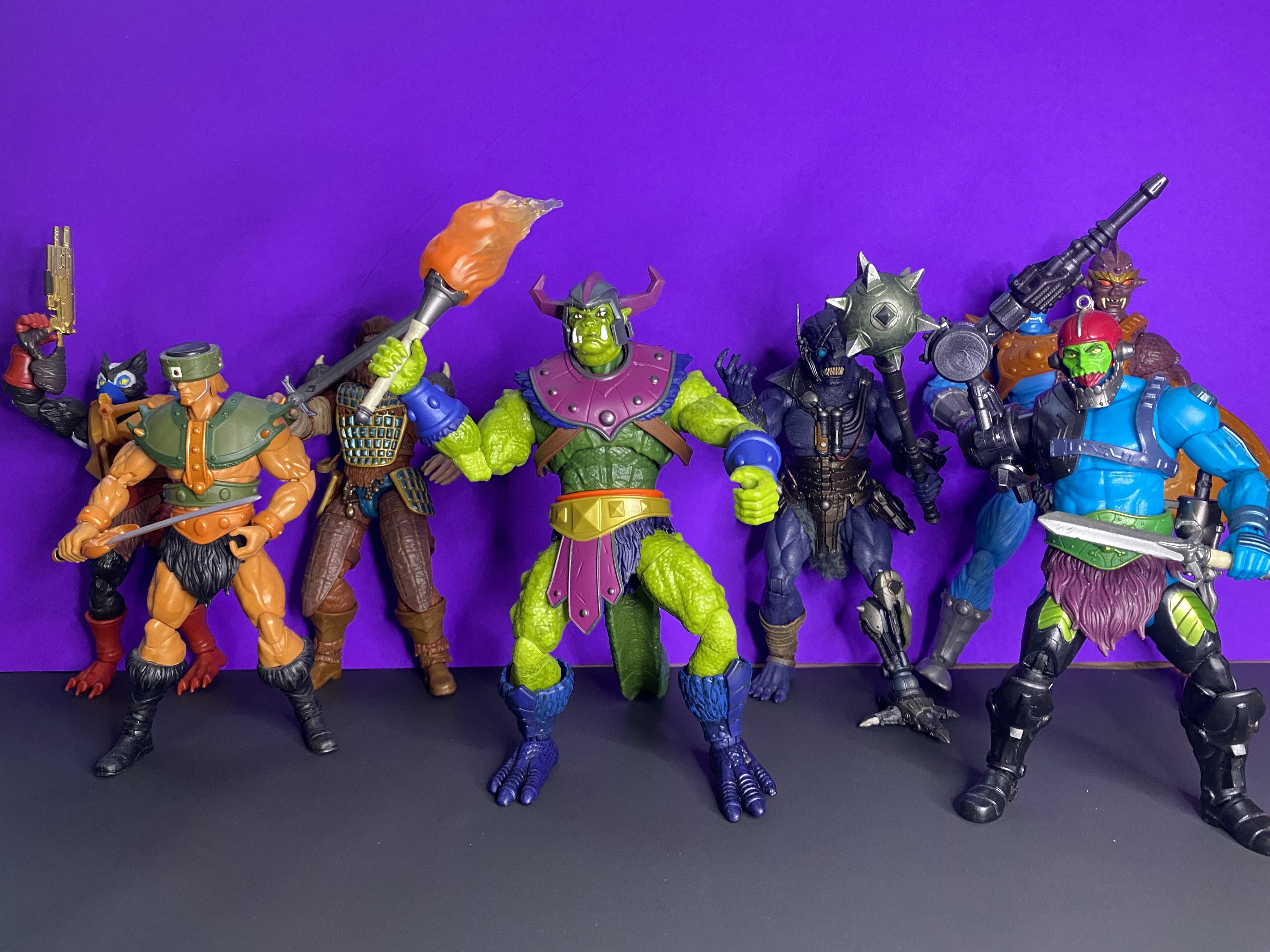 PICTURED: The Bounty Hunters. MASTERVERSE New Eternia Two Bad, Trap Jaw, and Whiplash. Cosmic Legions Kannox Vull. MASTERVERSE 1987 Movie Beast Man, MASTERVERSE Revelation Triclops and Stinkor (armed with AWOK shotgun). Find all of these reviewed at SpartanNerd.com