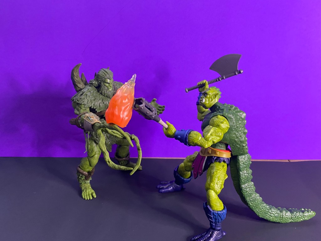 Yes. You can remove the fire from the torch. PICTURED: Masterverse New Eternia Moss Man and Whiplash. Both menacing green extreme. But Moss Man is so DRAB. Whiplash has accomplished it with style!