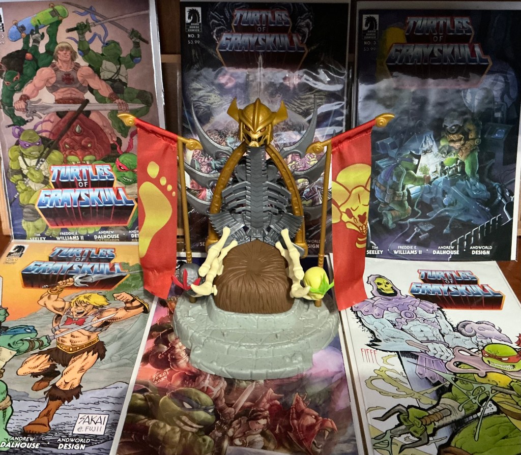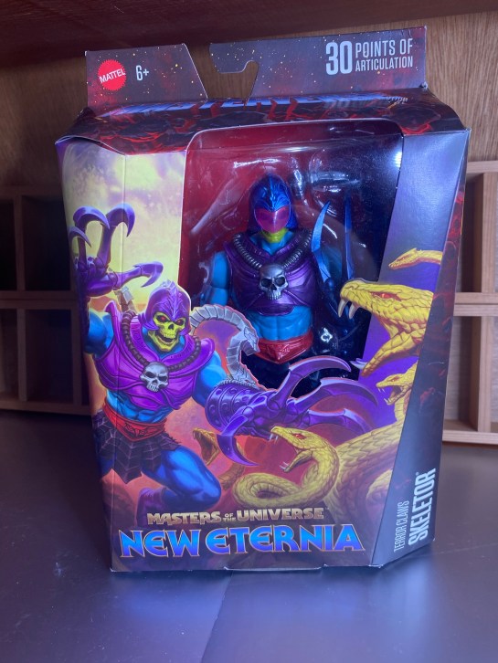 I was gifted Terror Claws Skeletor…a version of Skeletor I never had as a kid. (I didn’t care for the generation that was Flying Fist He-Man and Terror Claws Skeletor, and I believe this was He-Man’s fault). But I remember the Terror Claws from the mini comics, and I really like mini comics. (Versions of Skeletor I had were OG, Battle Armor, and Dragon Blaster).