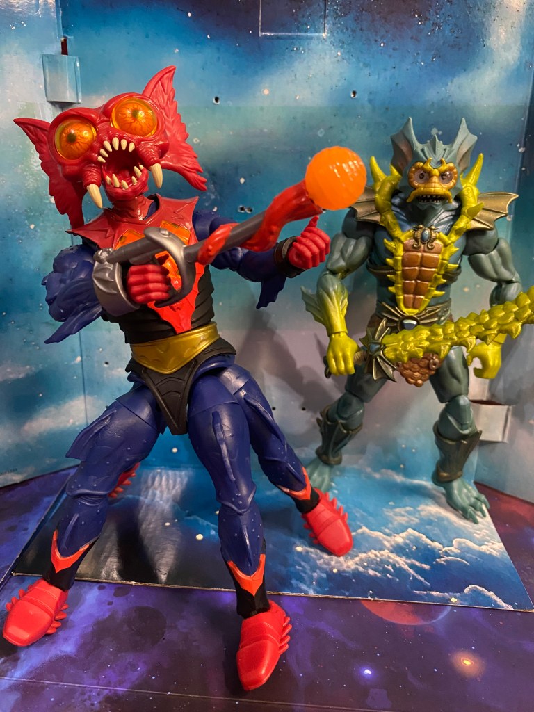 PICTURED: MASTERVERSE New Eternia Mantenna and Mer-Man. Do you see what I mean about Mantenna’s paint? Some of the same design elements are present in Mer-Man, but somehow it works better. Obviously more care was put into it. I feel like I have to add paint to Mantenna so that it will be right.