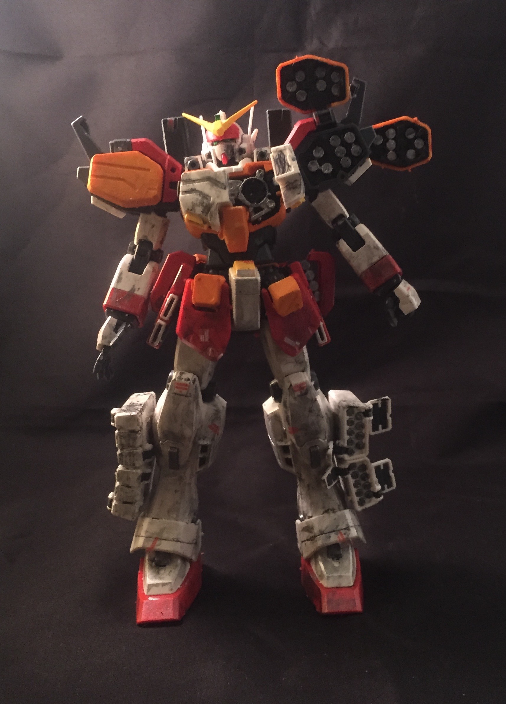 Here is the Sinanju standing on his own. The backpack adds a lot of weight, causing some balance issue, but not much. Notable, it was easy not to have the legs snapped all the way in. They kept coming off until the SpartanTeen figured out how to fully snap them in. (Sorry, the lighting system took accidental damage, and so this picture and all the rest are using flash only